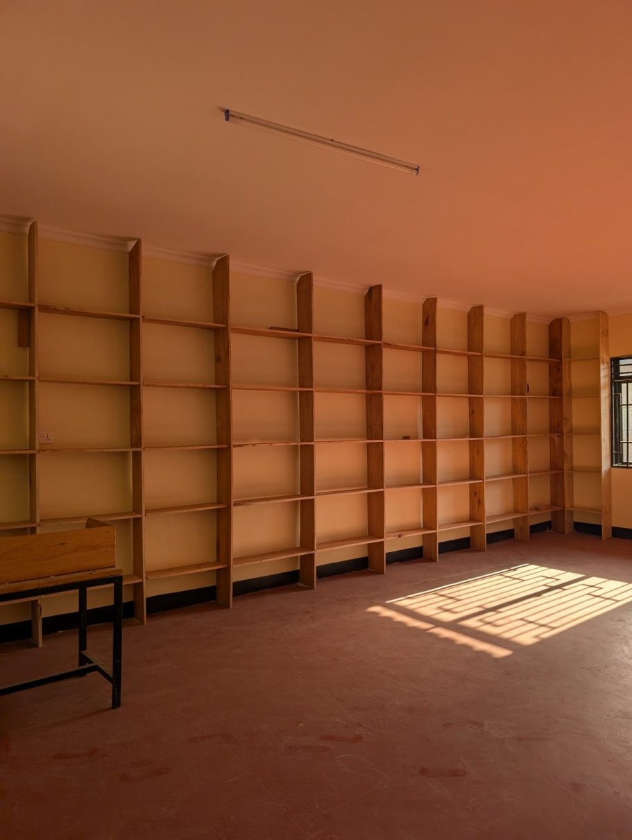 Jetzt, im Januar 2026, kurz vor dem Eintreffen der ersten Schülerinnen und Schüler wurden die Bibiliothek - mit wunderbaren Regalen, aber leider noch ohne Bücher - und die hölzerne Abtrennung zum Computer-Raum - natürlich auch noch ohne Computer - fertiggestellt.